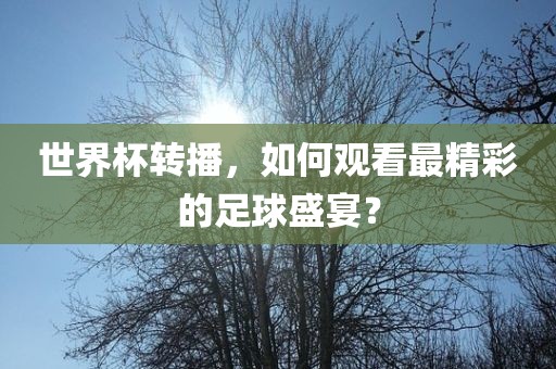随着科技的进步和互联网的普及,越来越多的人选择在家观看世界杯转播,享受足球盛宴,作为球迷,如何观看最精彩的足球盛宴成为了大家关注的焦点,本文将为您介绍世界杯转播的相关内容,包括观看途径、注意事项以及优化观看体验的建议,帮助您更好地享受世界杯的精彩瞬间。