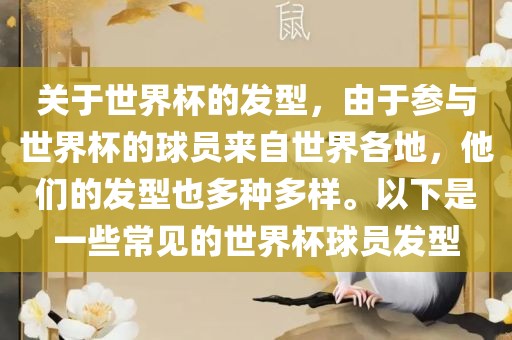 还有一些球员可能会尝试新的、独特的发型来展示自己的个性,世界杯球员的发型是多种多样的,取决于球员的个人喜好和他们的文化背景,如需更多信息,可以关注世界杯相关的资讯和报道。