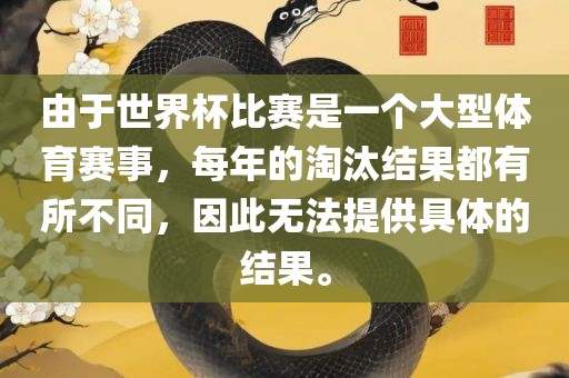 摘要:世界杯比赛是一项大型体育赛事,每年的比赛结果都充满悬念和变化,无法提供具体的淘汰结果。每年的比赛都吸引着全球亿万观众的关注,各国球队为了荣誉和梦想展开激烈角逐,展现出体育精神和竞技水平的最高境界。