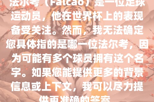 法尔考(Falcao)是一位足球运动员,他在世界杯上的表现备受关注。然而,我无法确定您具体指的是哪一位法尔考,因为可能有多个球员拥有这个名字。如果您能提供更多的背景信息或上下文,我可以尽力提供更准确的答案。